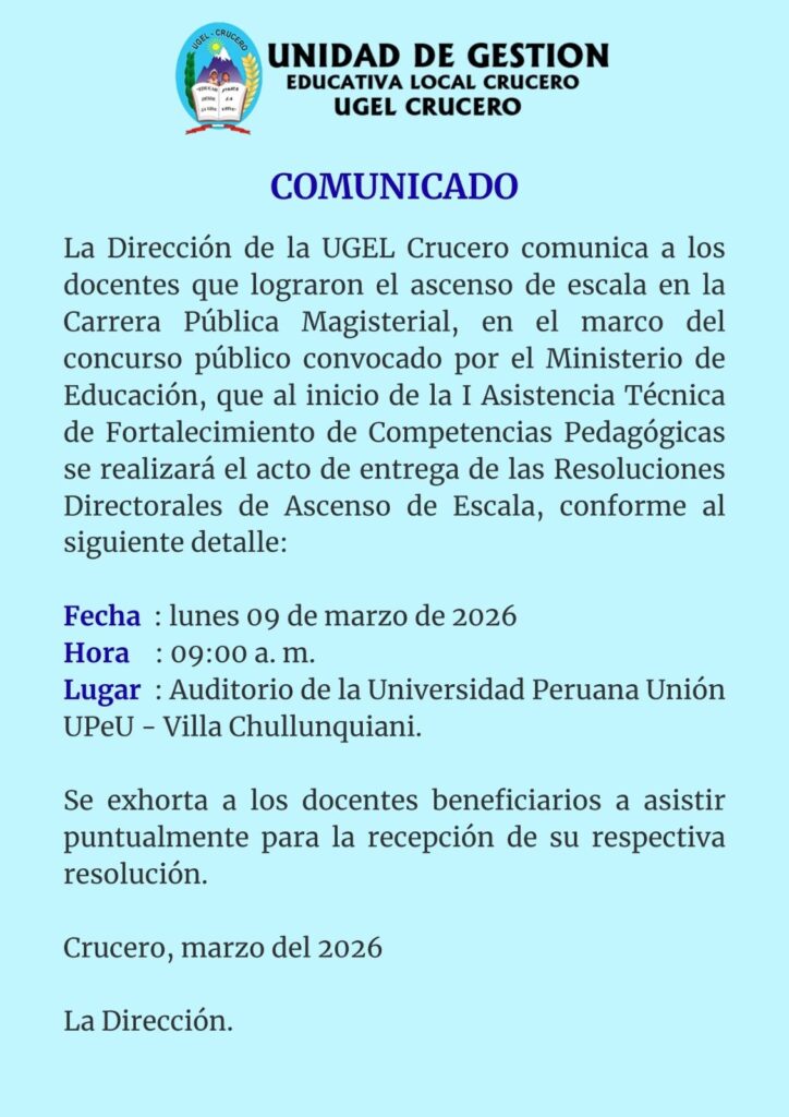 AnunciosCapacitacionesComunicadosNoticias COMUNICADO by ugel crucero 5 de marzo de 2026 5 de marzo de 2026